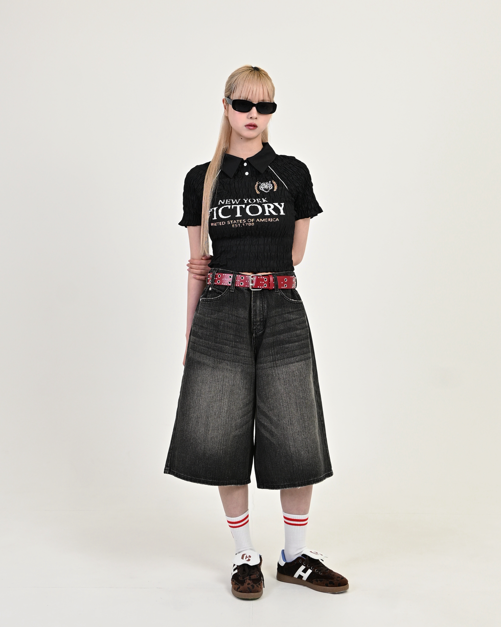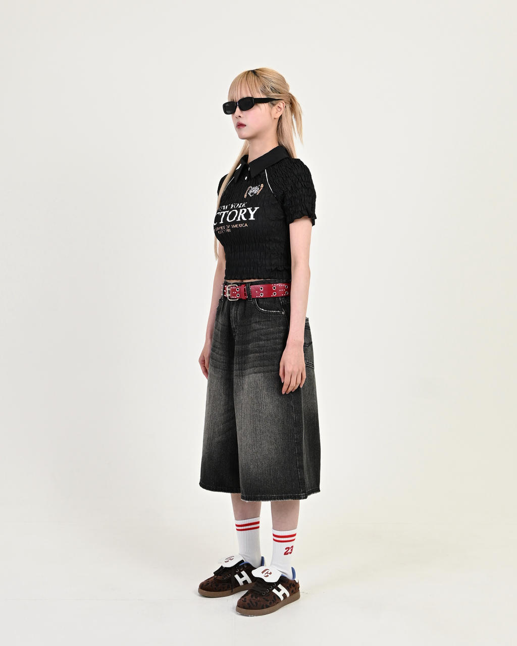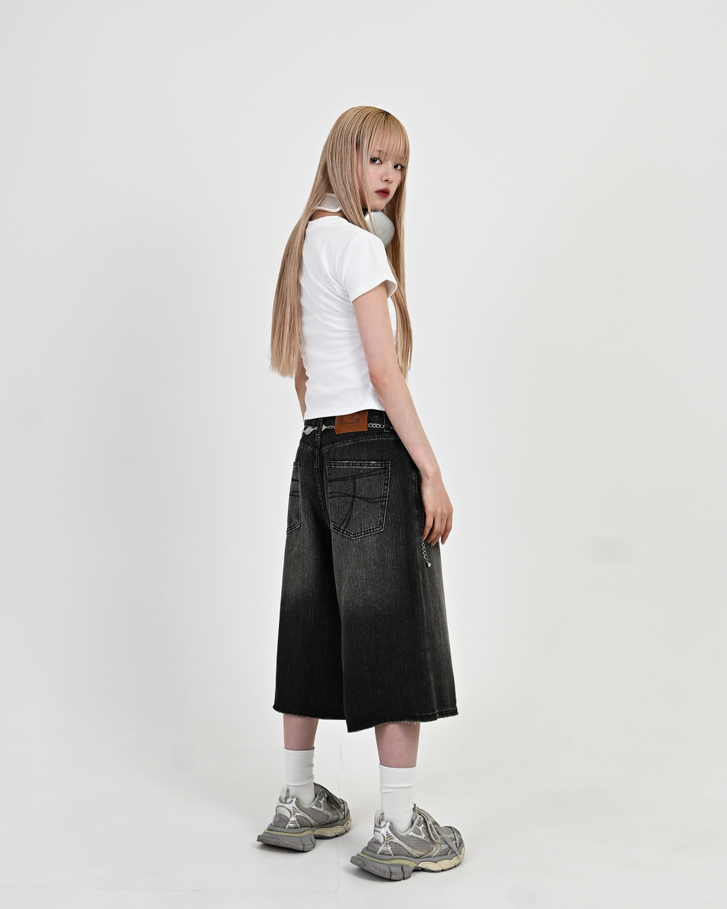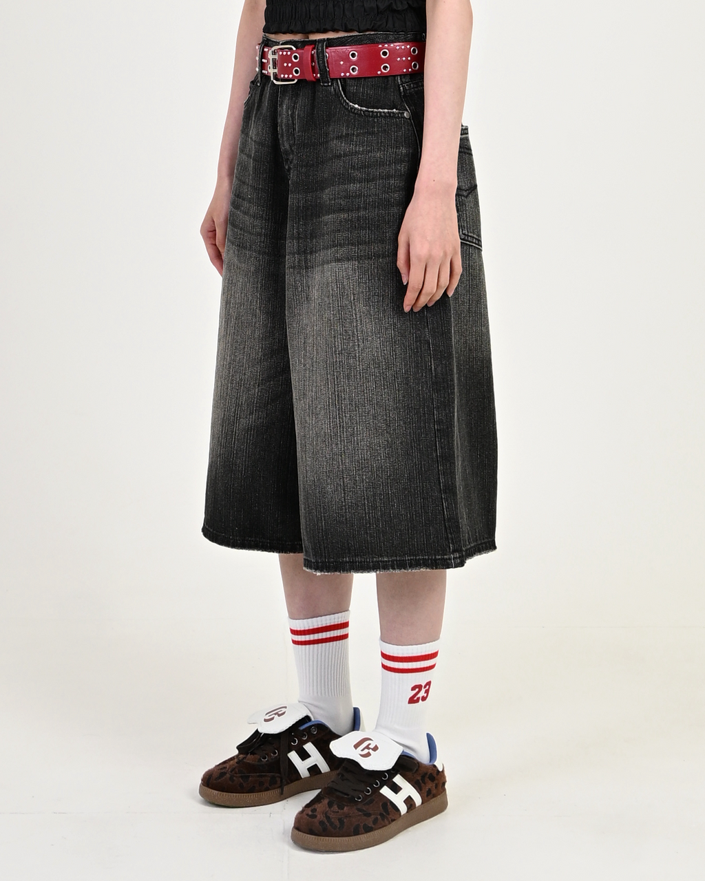 トレンドを押さえた膝下丈のデニムハーフパンツが登場。