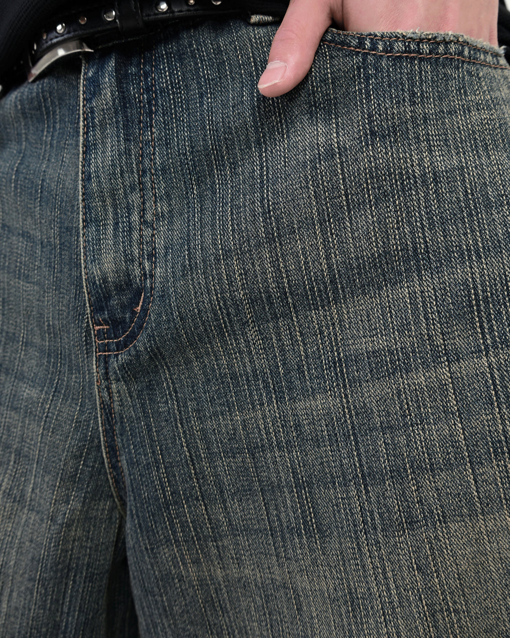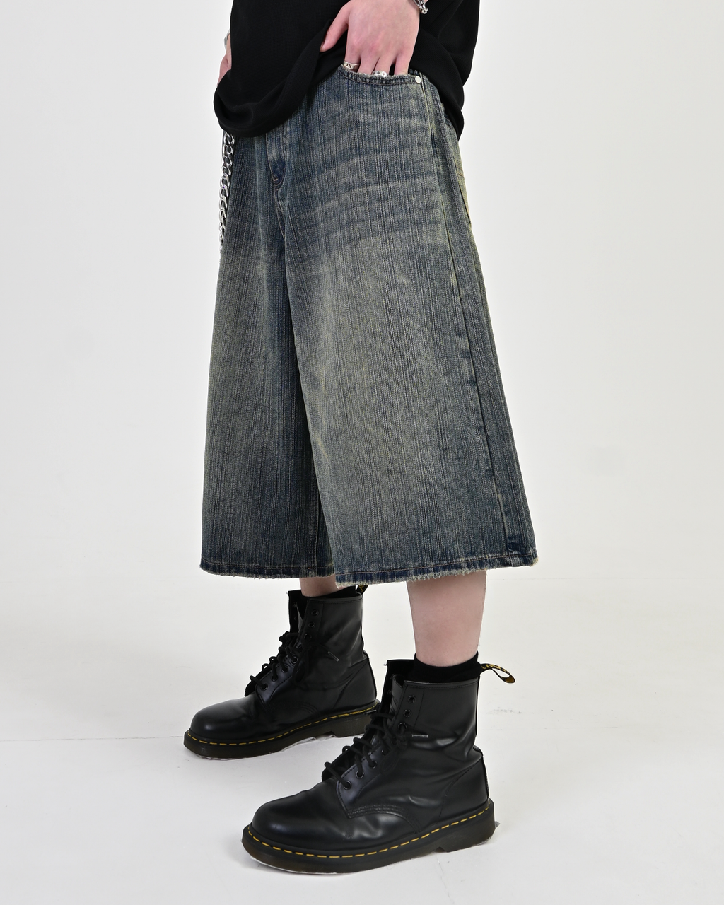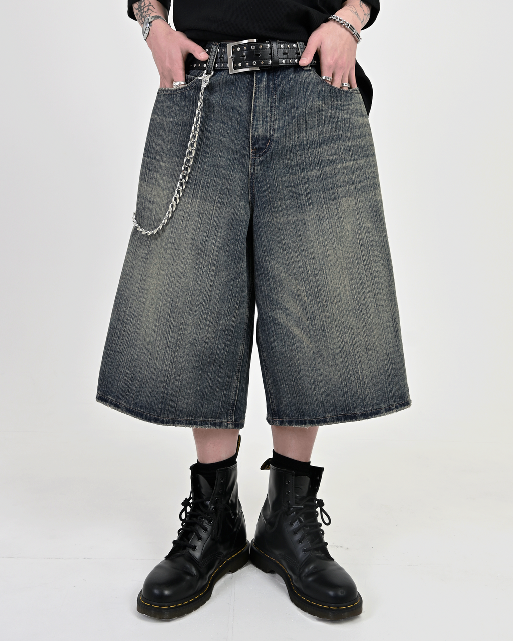 あえて不均一な糸を織り込んだデニム生地により、ヴィンテージのような自然な縦落ち感を再現。 一見すると”今っぽい”王道アイテムだが、ディテールにはしっかりと地底人ONLINEらしい“一癖”を加えています。ただのトレンドアイテムでは終わらせない、“らしさ”を詰め込んだハーフパンツに仕上がりました。