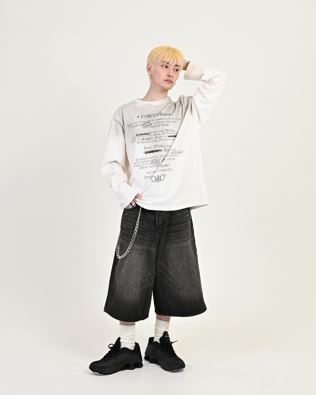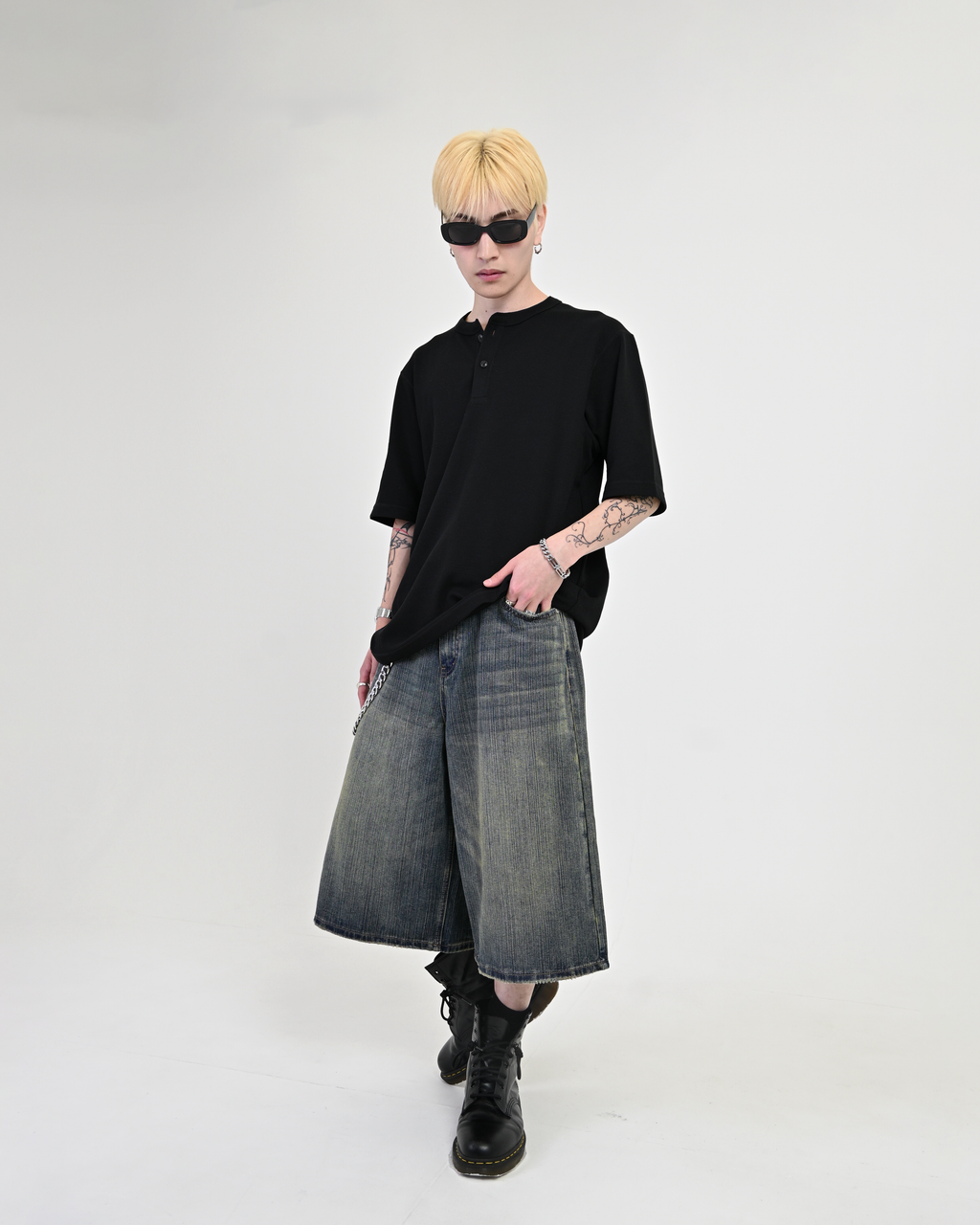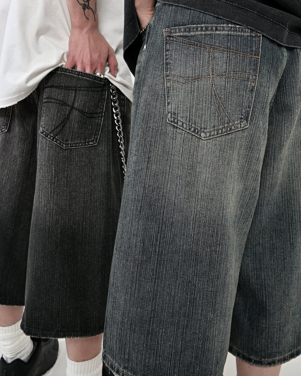 あえて不均一な糸を織り込んだデニム生地により、ヴィンテージのような自然な縦落ち感を再現。 一見すると”今っぽい”王道アイテムだが、ディテールにはしっかりと地底人ONLINEらしい“一癖”を加えています。ただのトレンドアイテムでは終わらせない、“らしさ”を詰め込んだハーフパンツに仕上がりました。