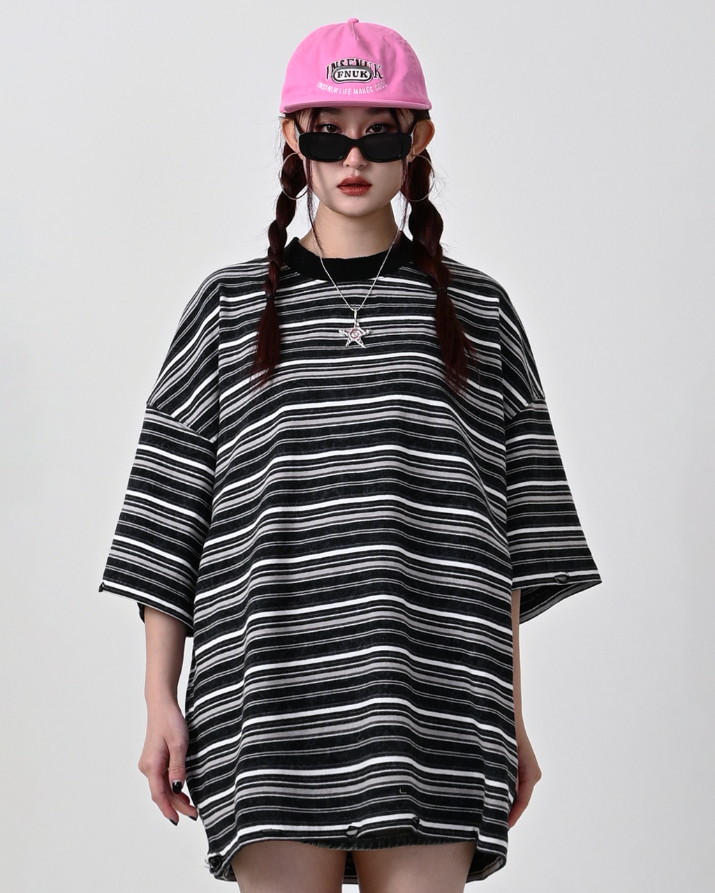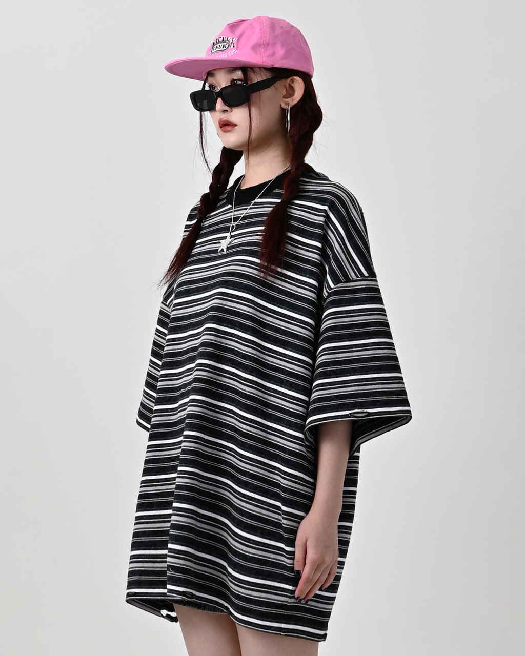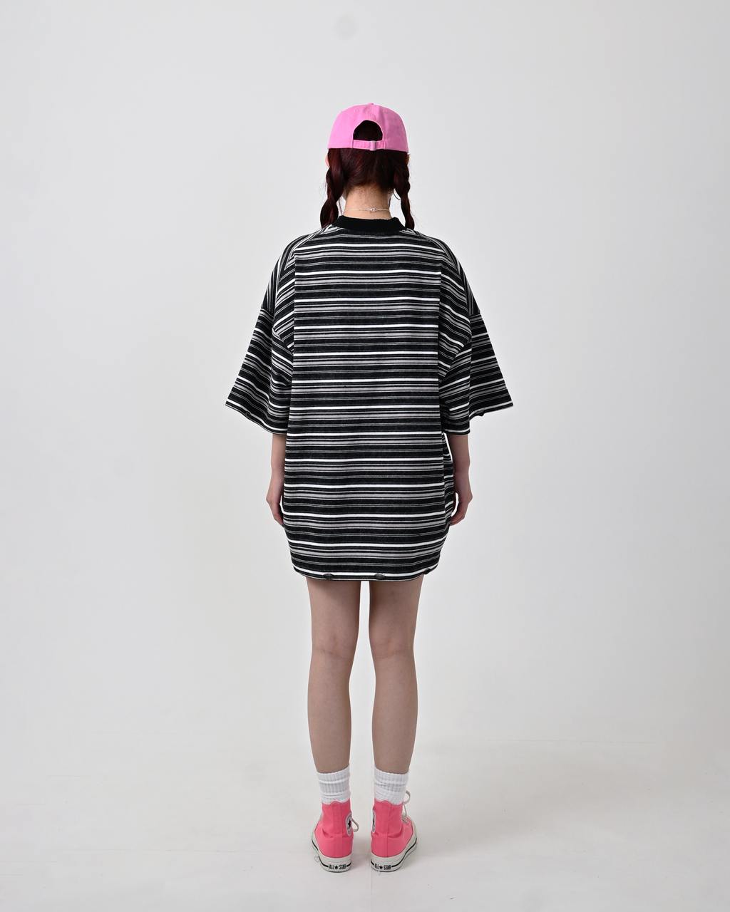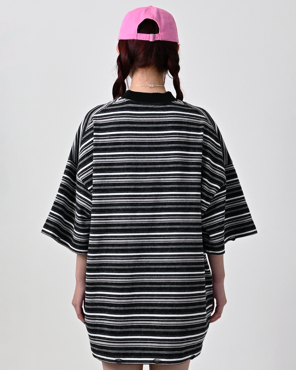 一見ベーシックなボーダー柄ながら、ウォッシュ加工を施してこなれた表情に。裾と首元にはあえてダメージ加工を加え、ヴィンテージライクな雰囲気を演出しています。