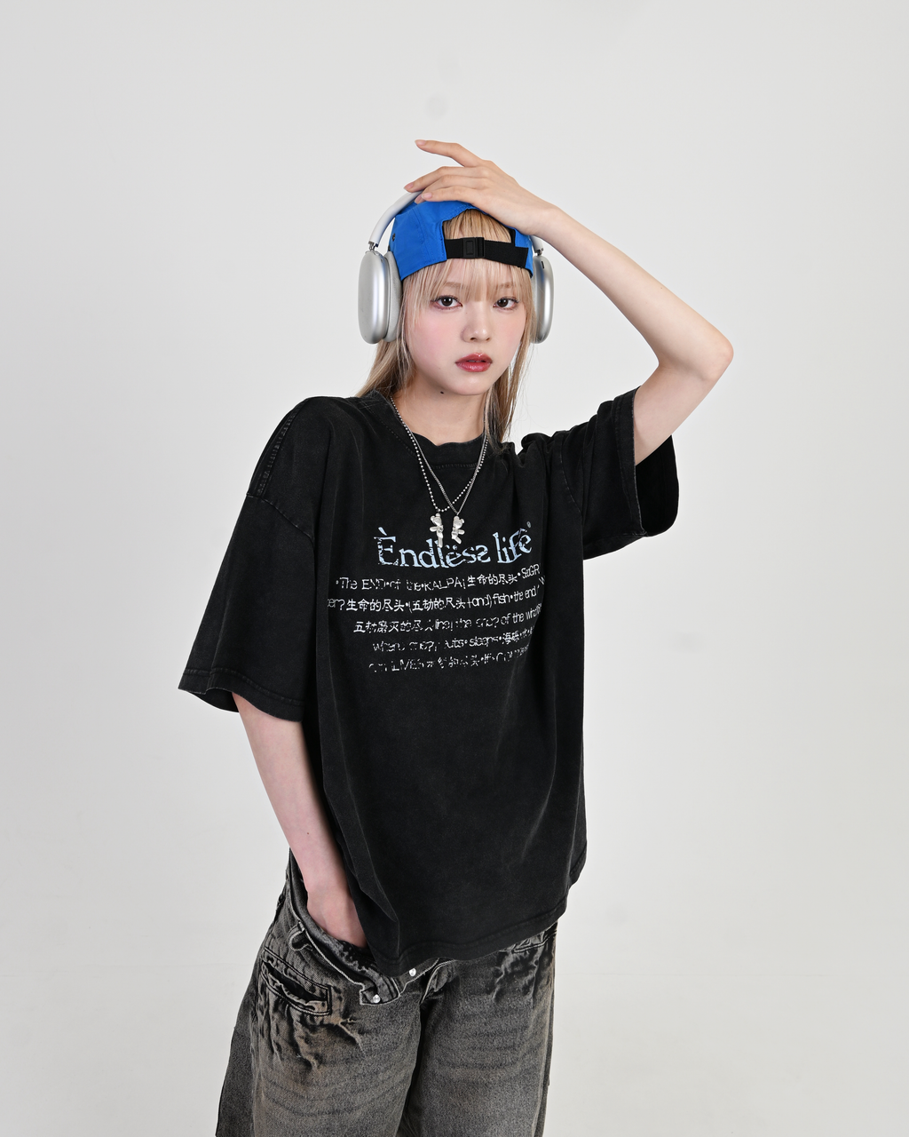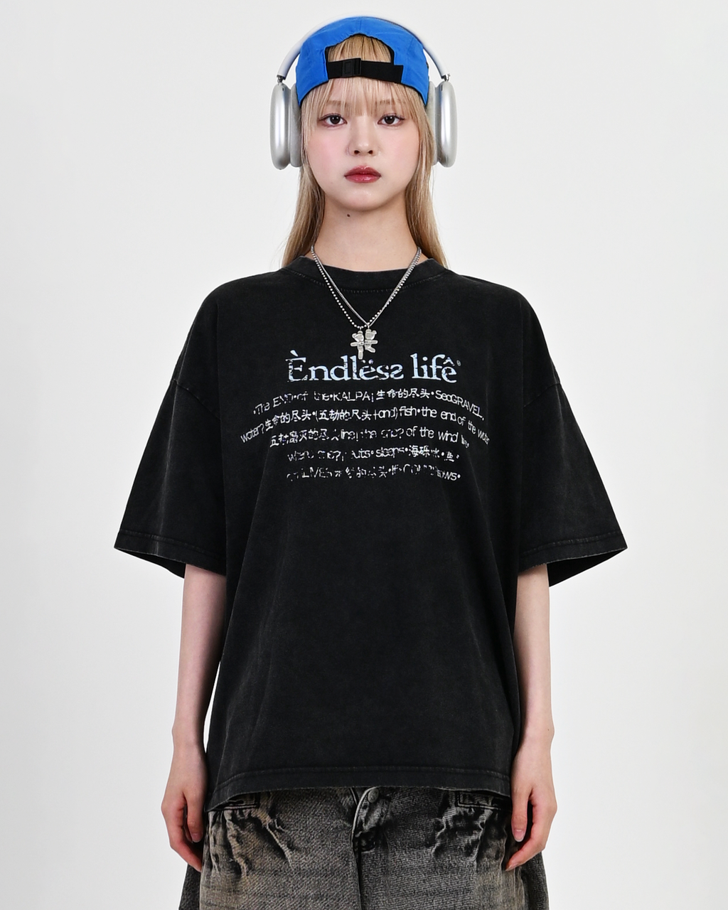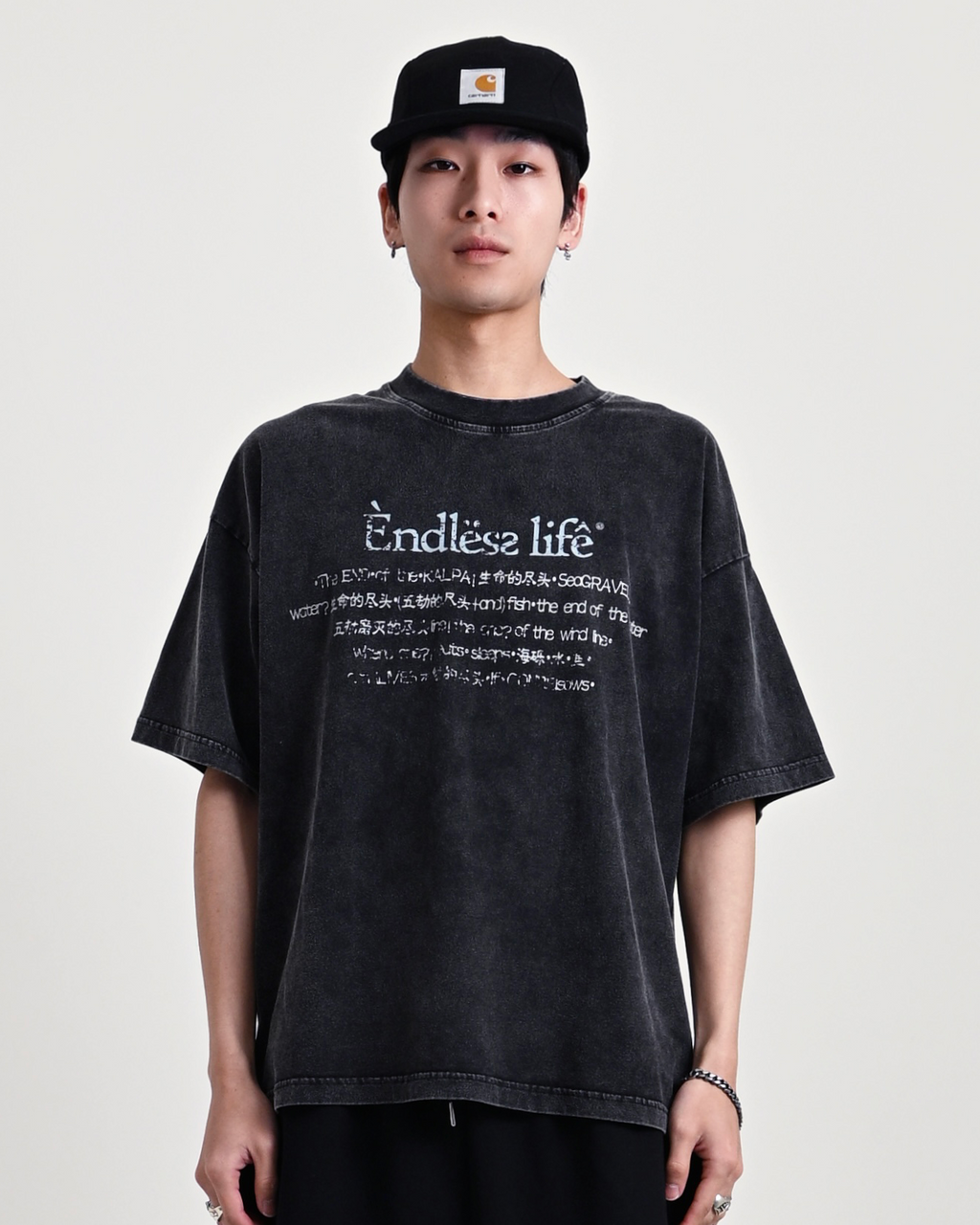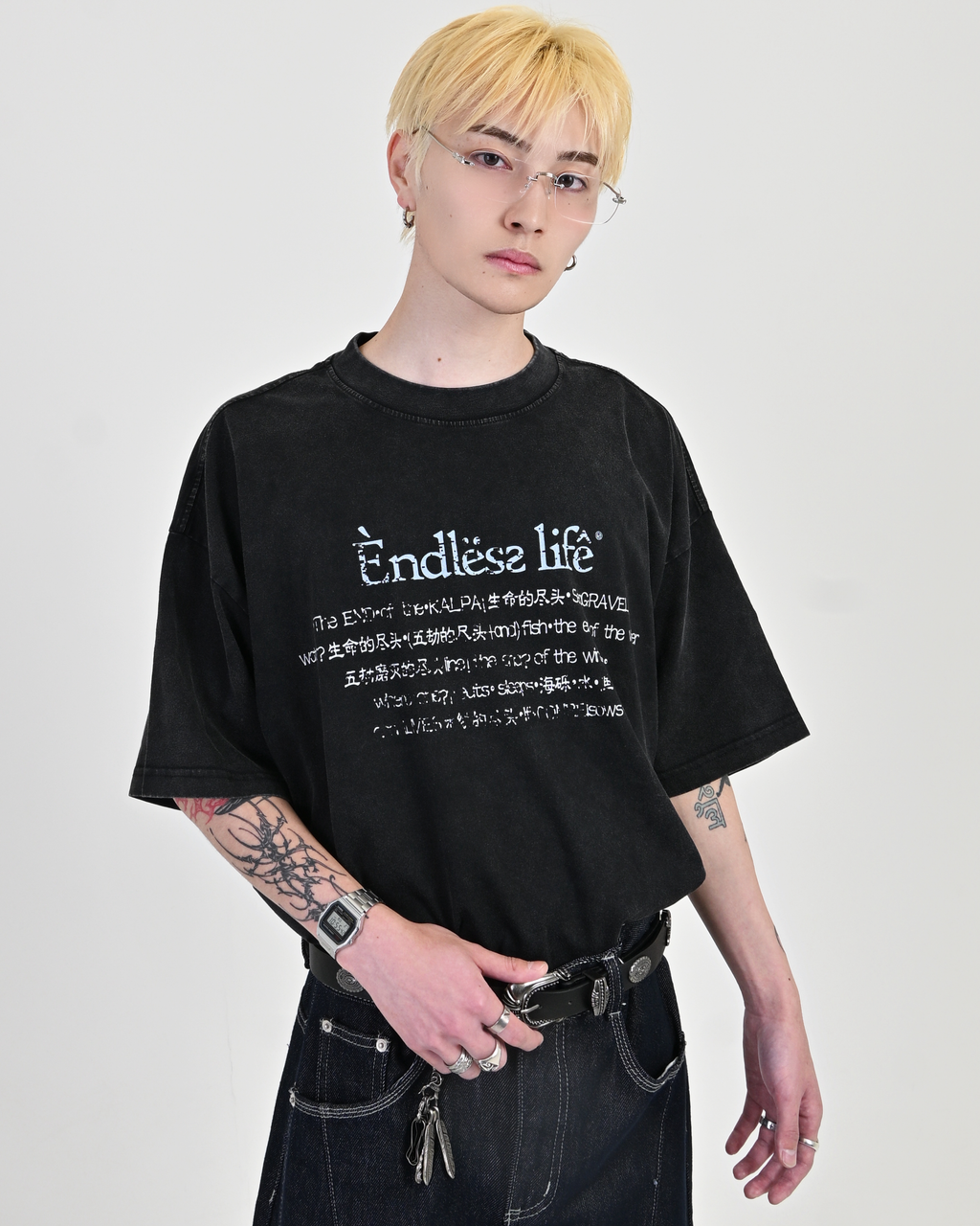 フロントには、地底人ONLINEらしい“文字化け”をデザインに落とし込んだグラフィック。英語と漢字がノイズのように混ざり合い、意味を読み解けそうで読み解けない、独特の世界観を演出しています。