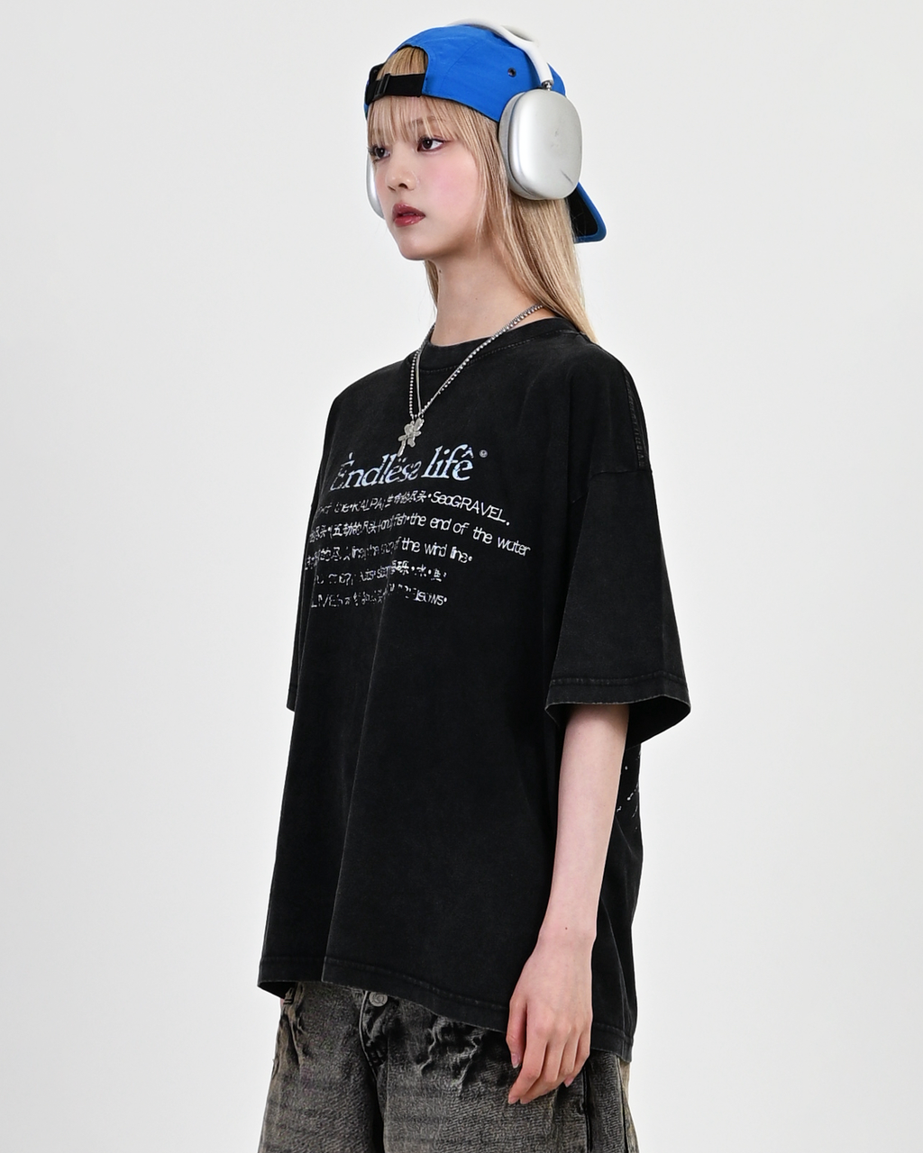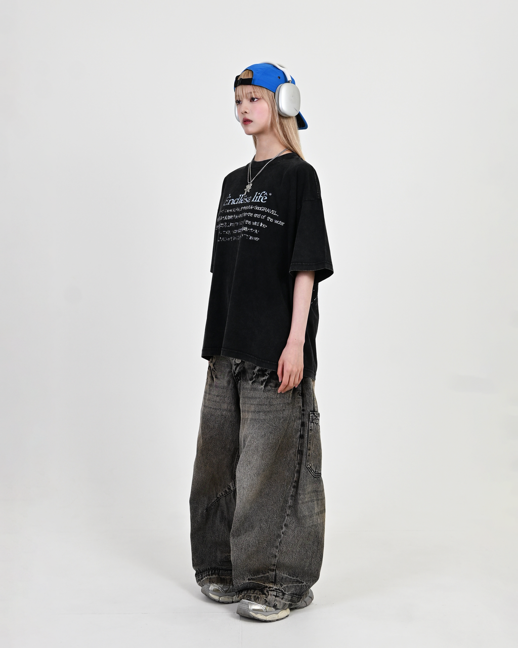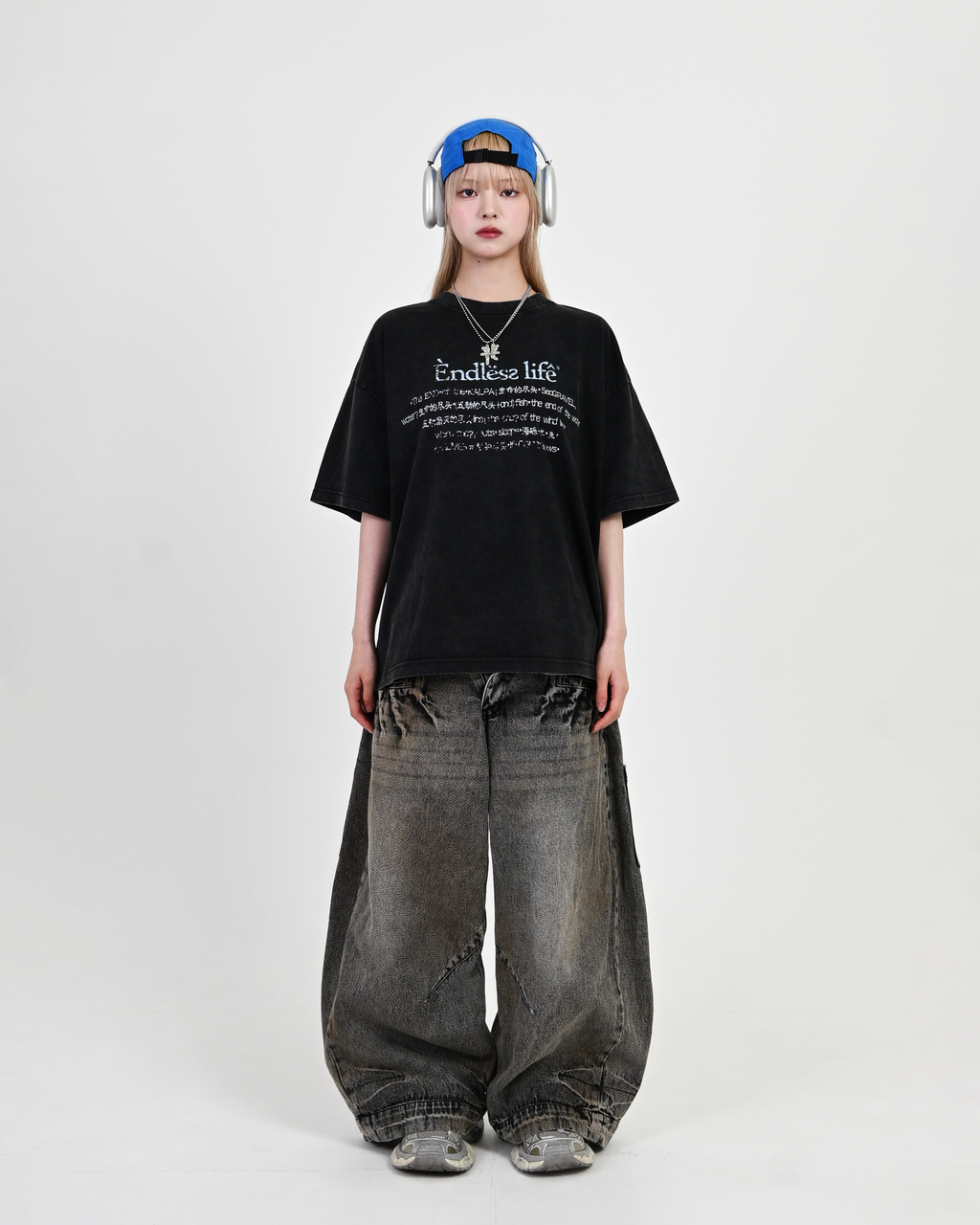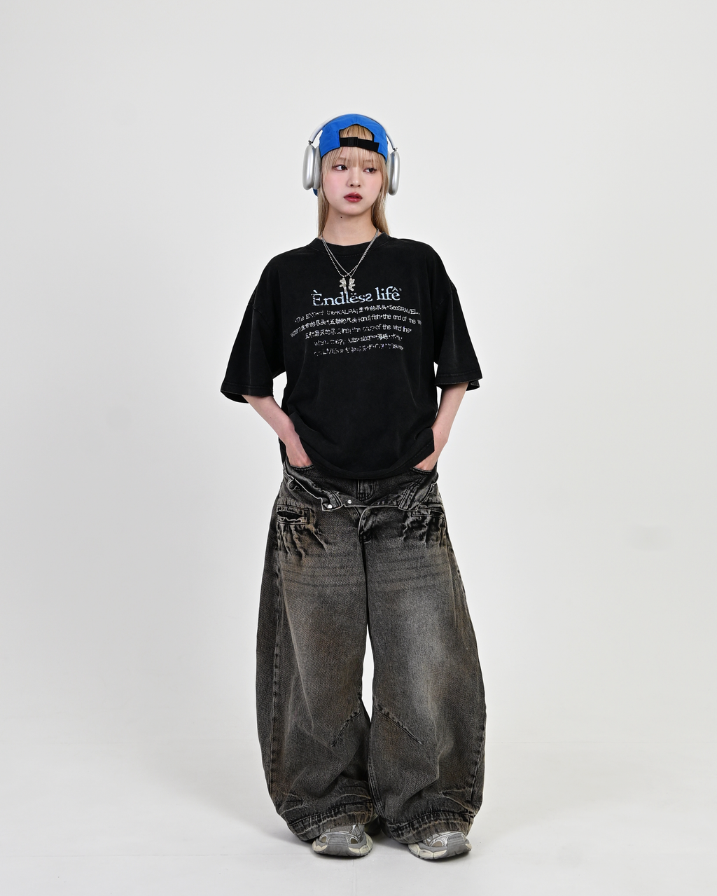 フロントには、地底人ONLINEらしい“文字化け”をデザインに落とし込んだグラフィック。英語と漢字がノイズのように混ざり合い、意味を読み解けそうで読み解けない、独特の世界観を演出しています。