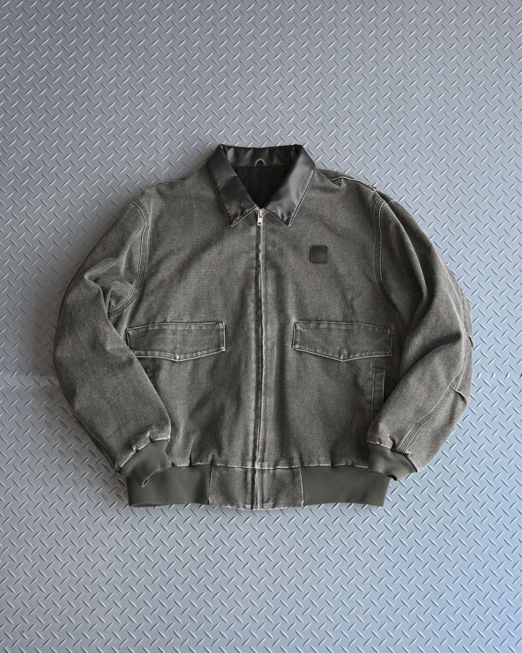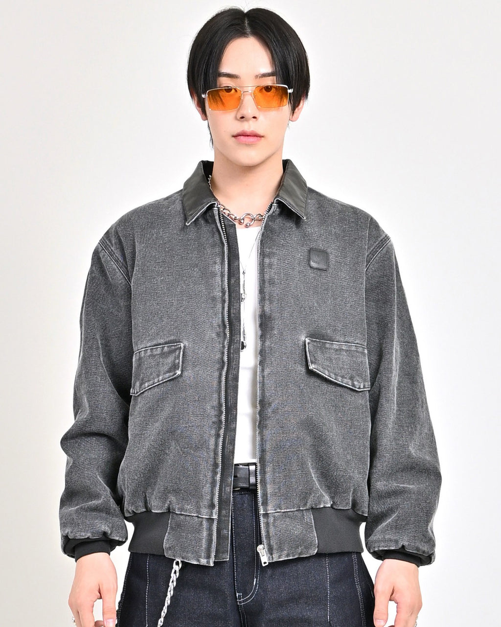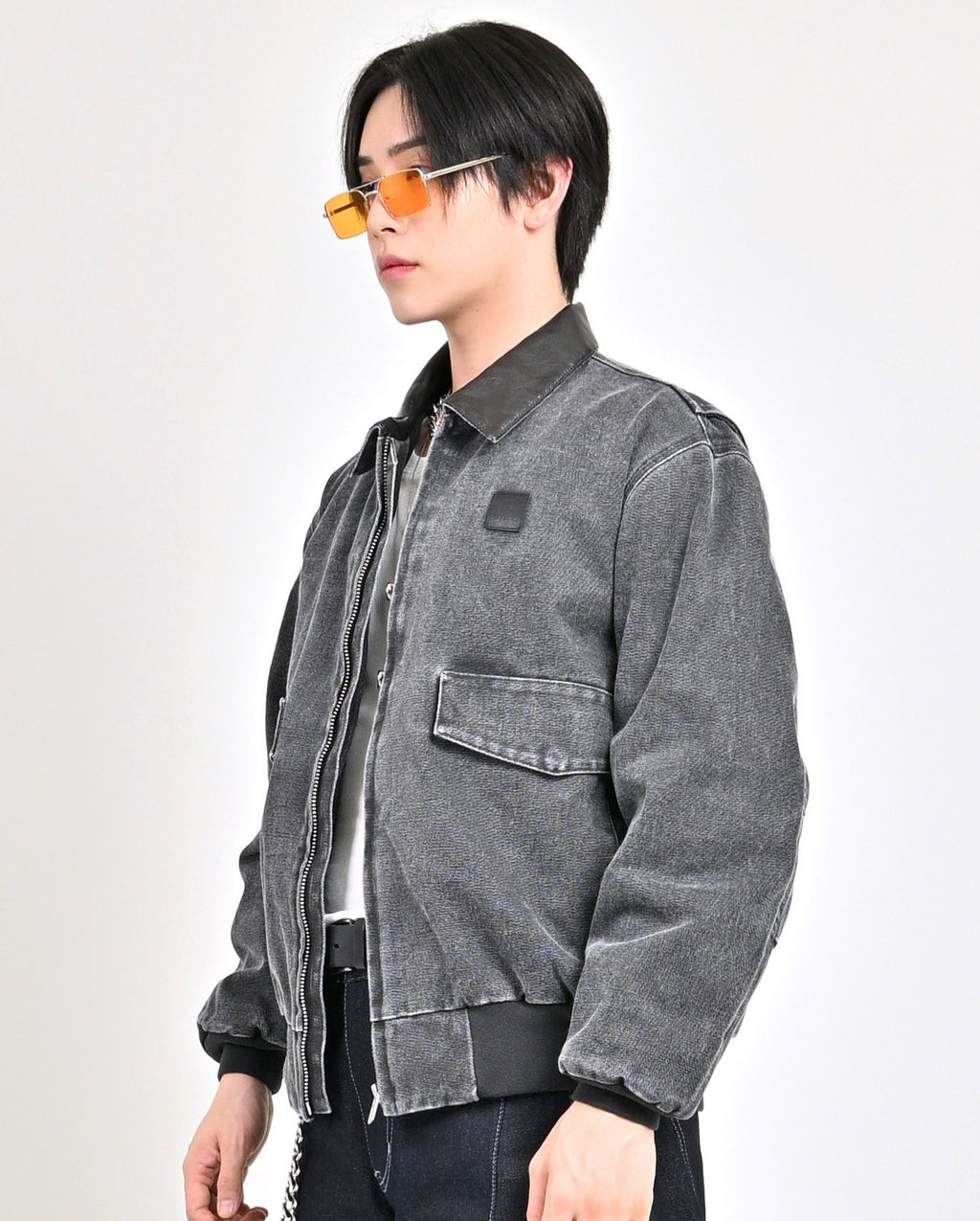 トレンドのキャンバス生地をベースに、襟にPUレザーを採用したデトロイトジャケット。