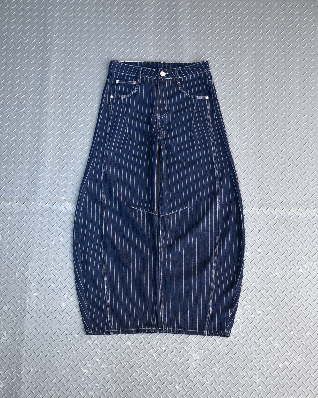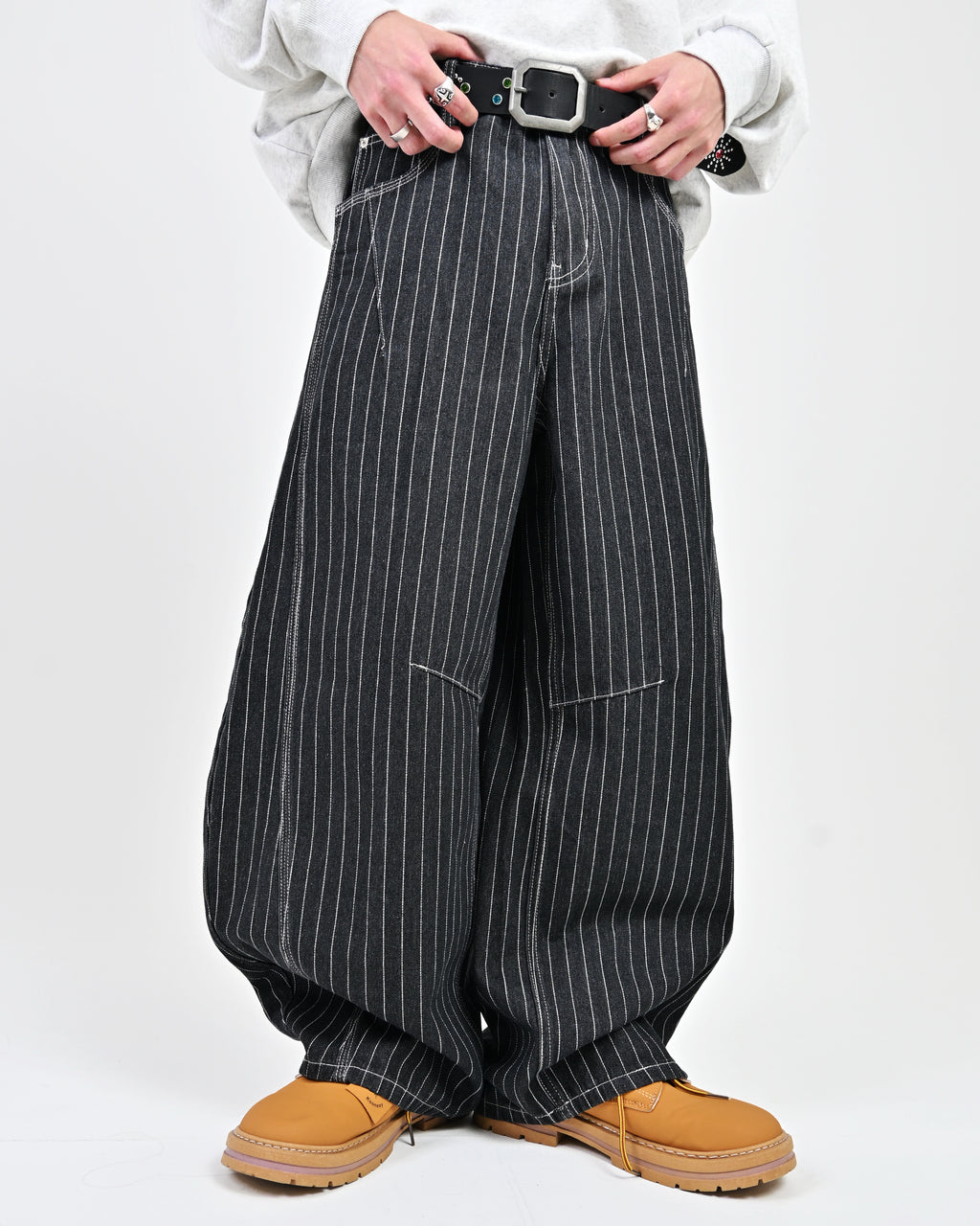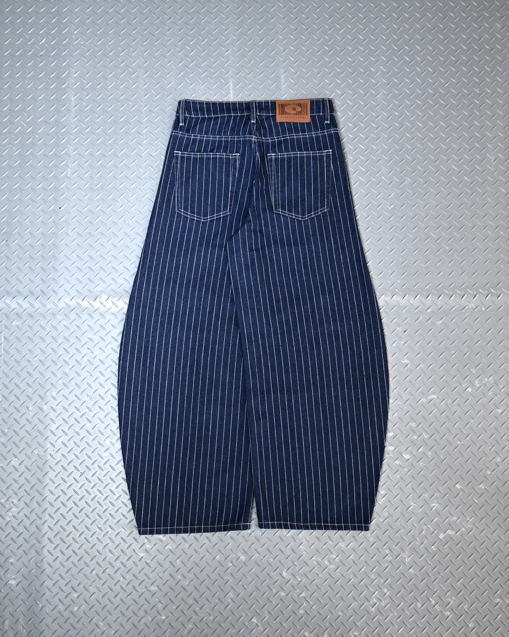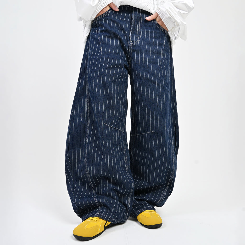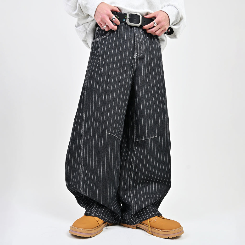 トレンド感のあるストライプデニムに、地底人ONLINEらしいバルーンシルエットを掛け合わせた一本。