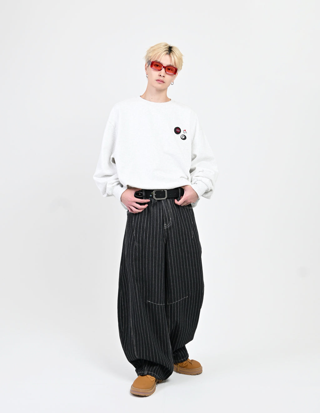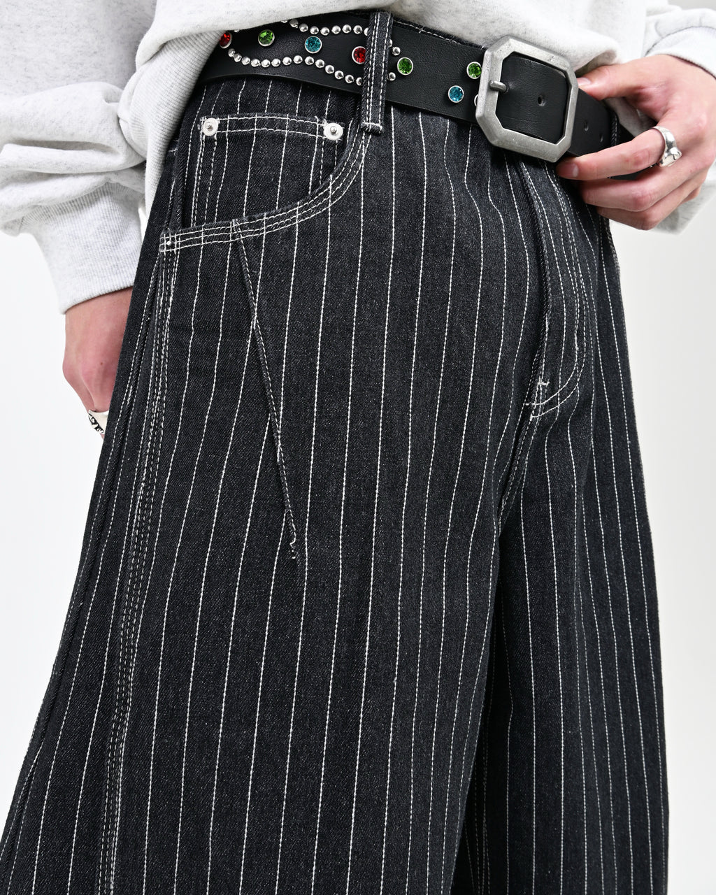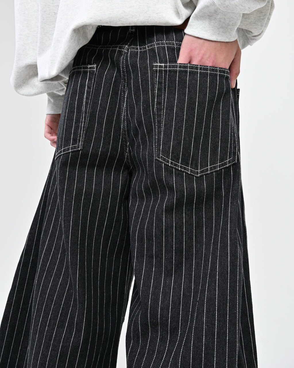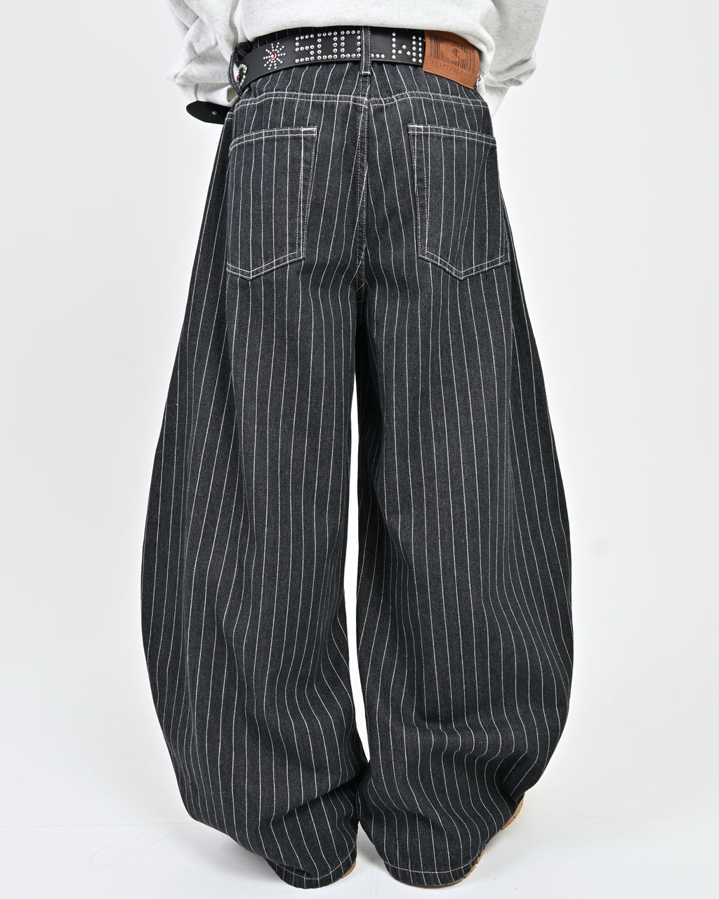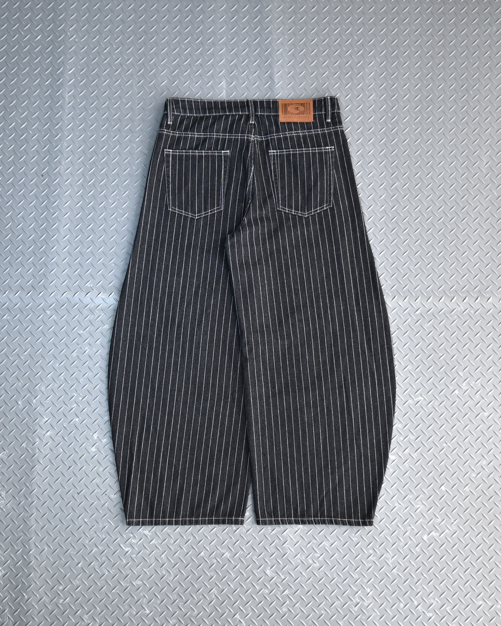 トレンド感のあるストライプデニムに、地底人ONLINEらしいバルーンシルエットを掛け合わせた一本。
