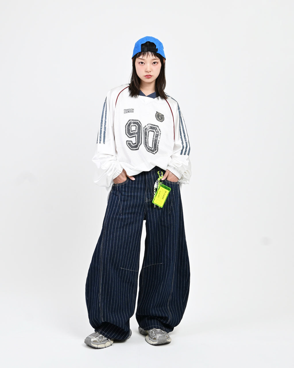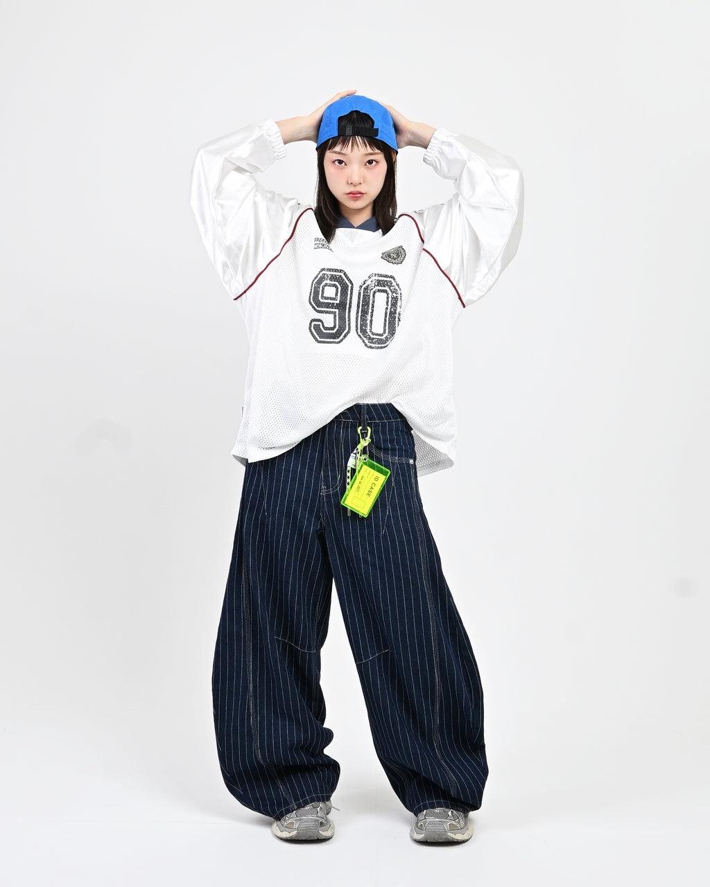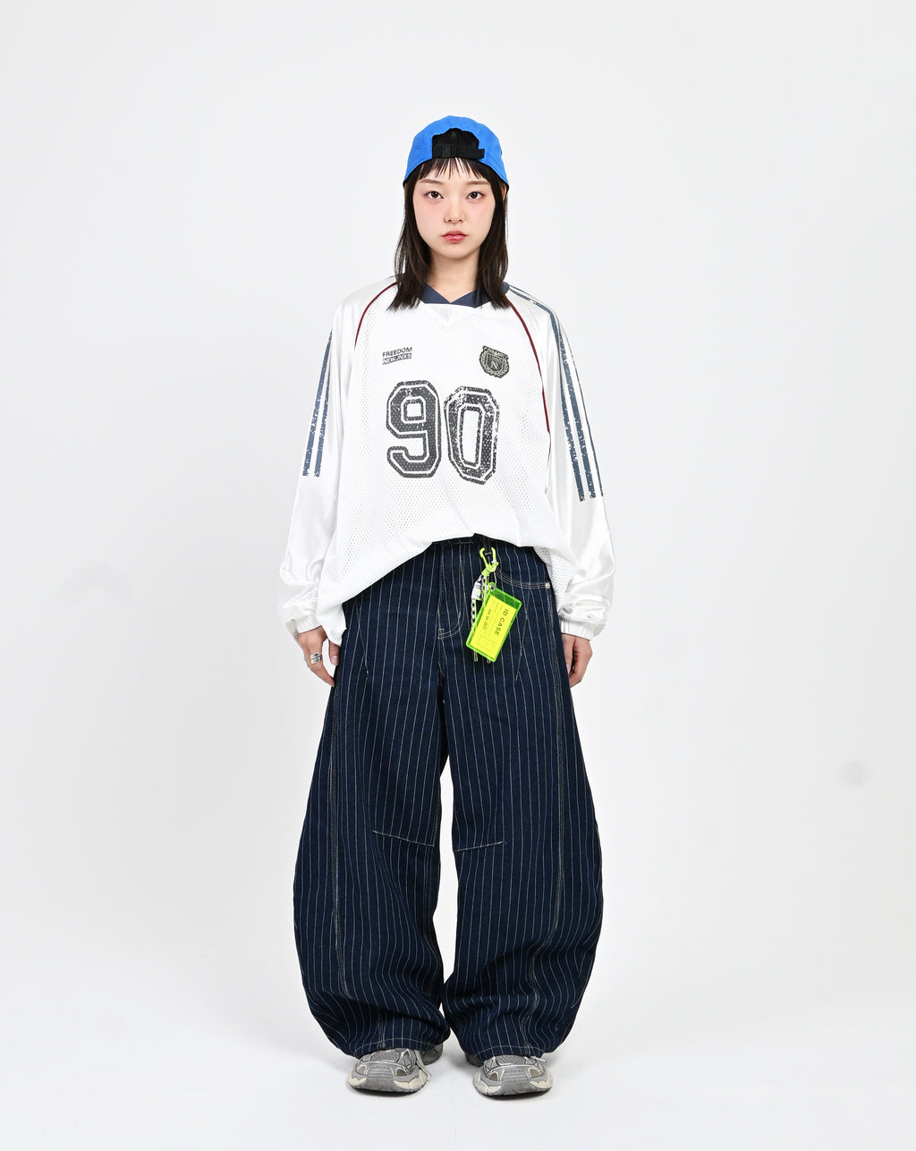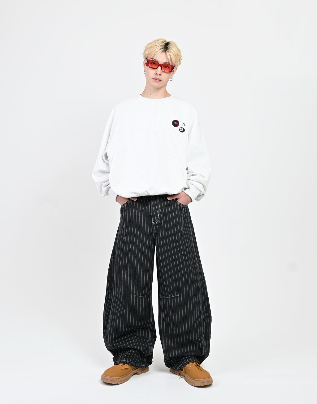 トレンド感のあるストライプデニムに、地底人ONLINEらしいバルーンシルエットを掛け合わせた一本。