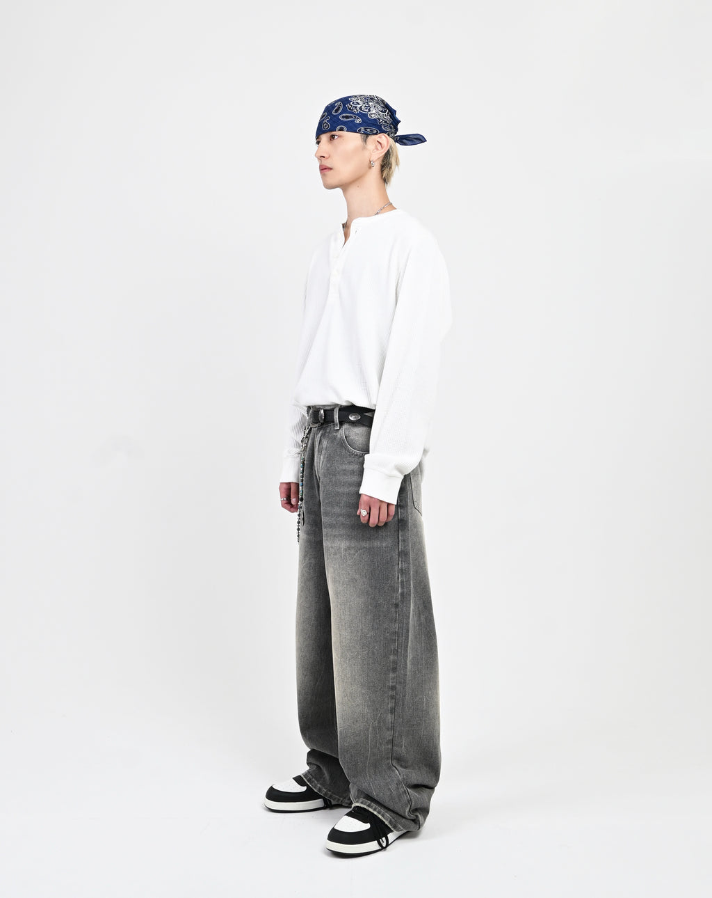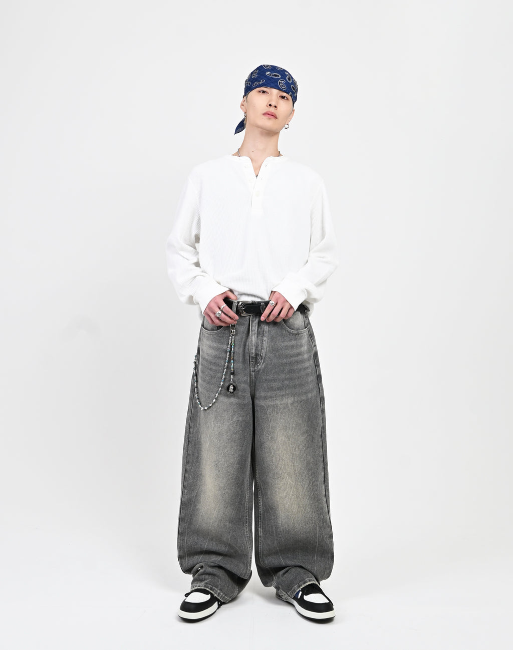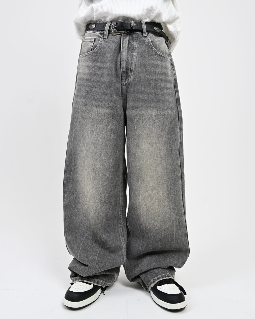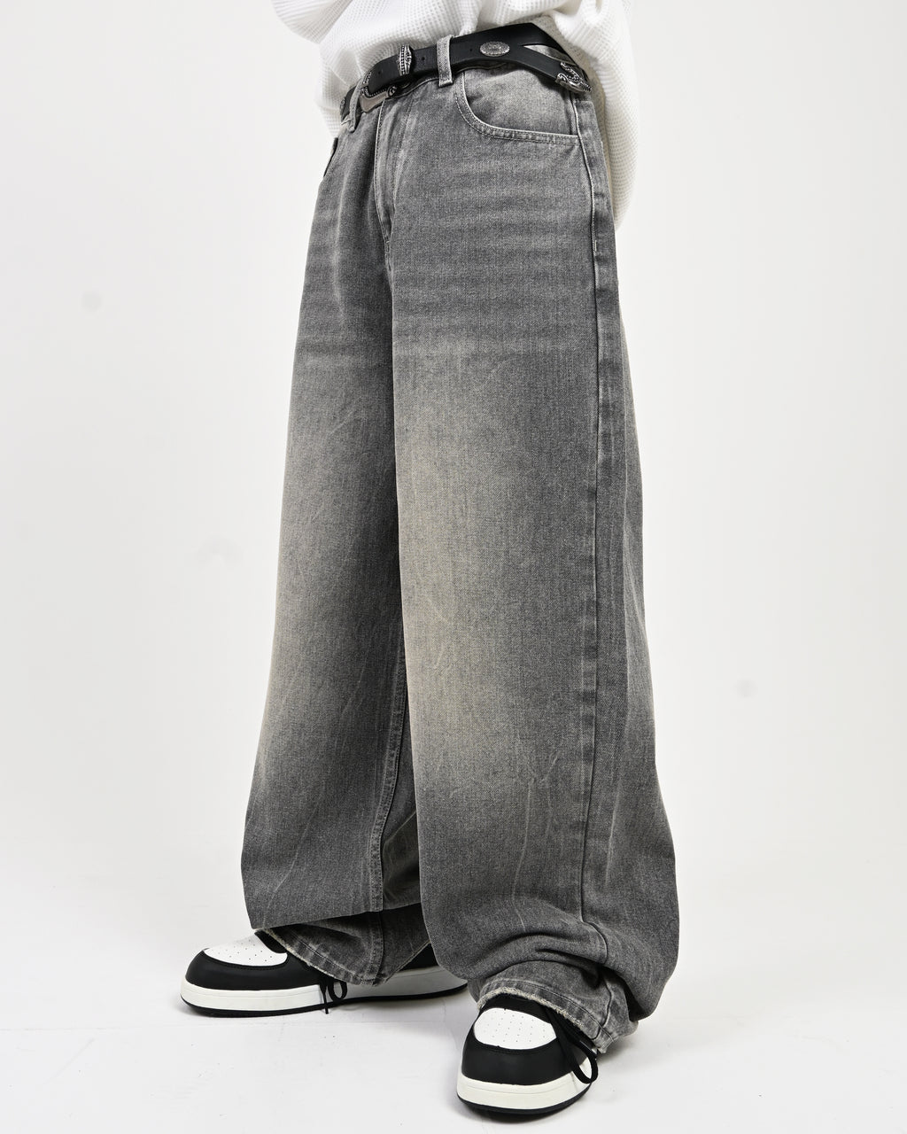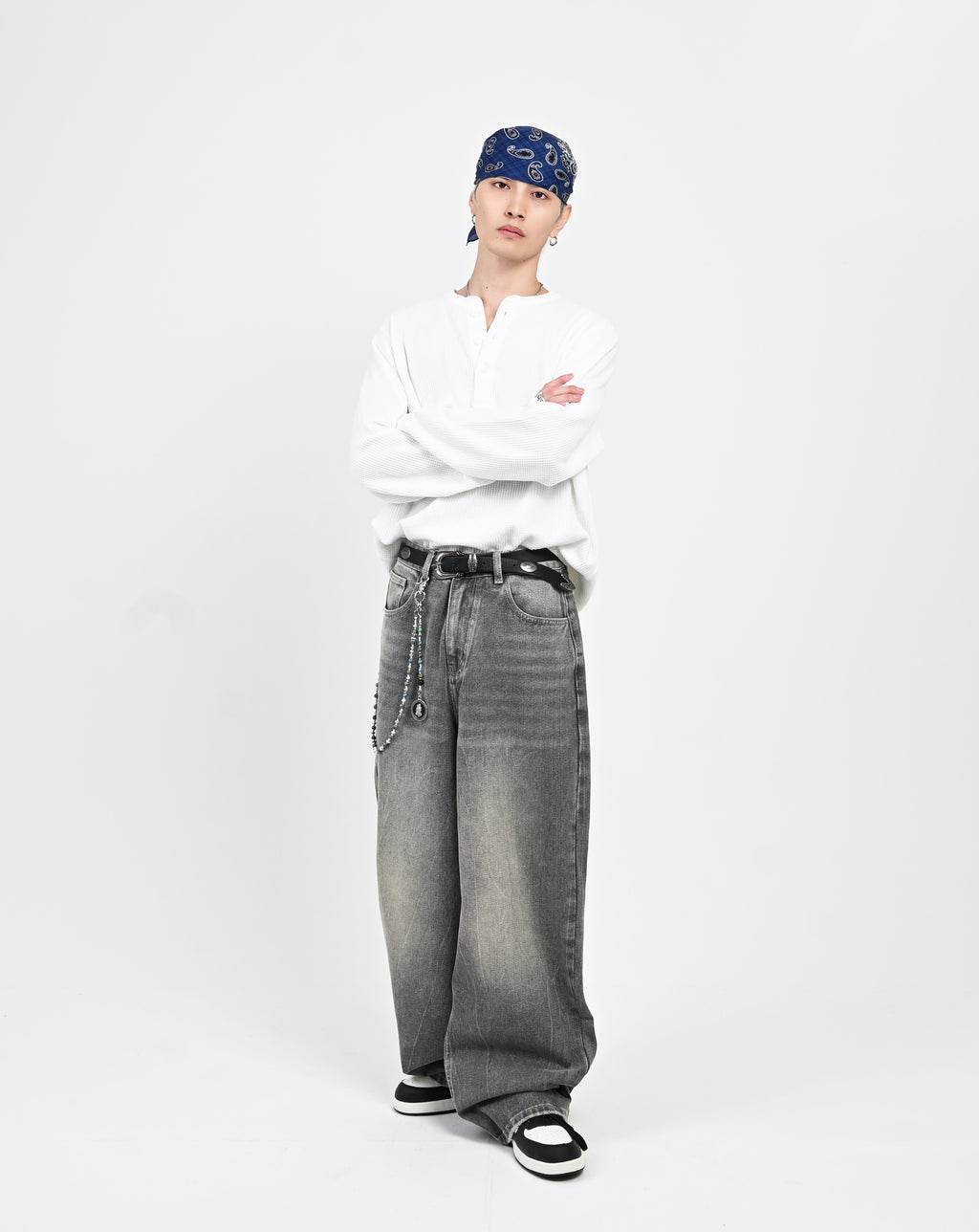 定番のバギーデニムに、黄味がかったウォッシュ加工を施し、さらにクラック加工で雷のようなヒゲを再現。まるで本物のヴィンテージデニムのような奥行きのある色合いに仕上げました。