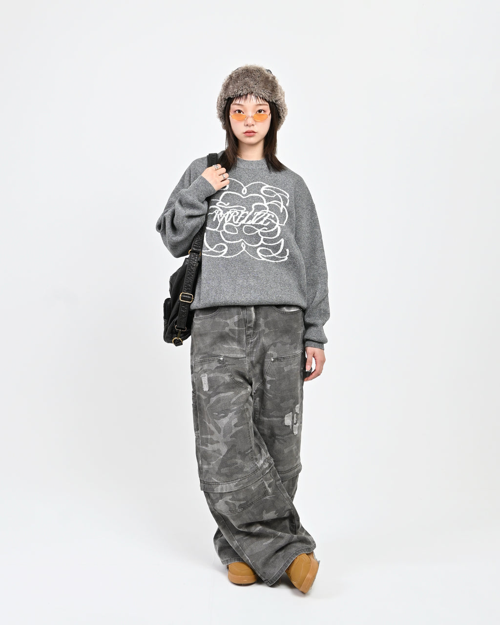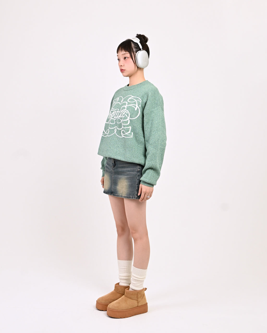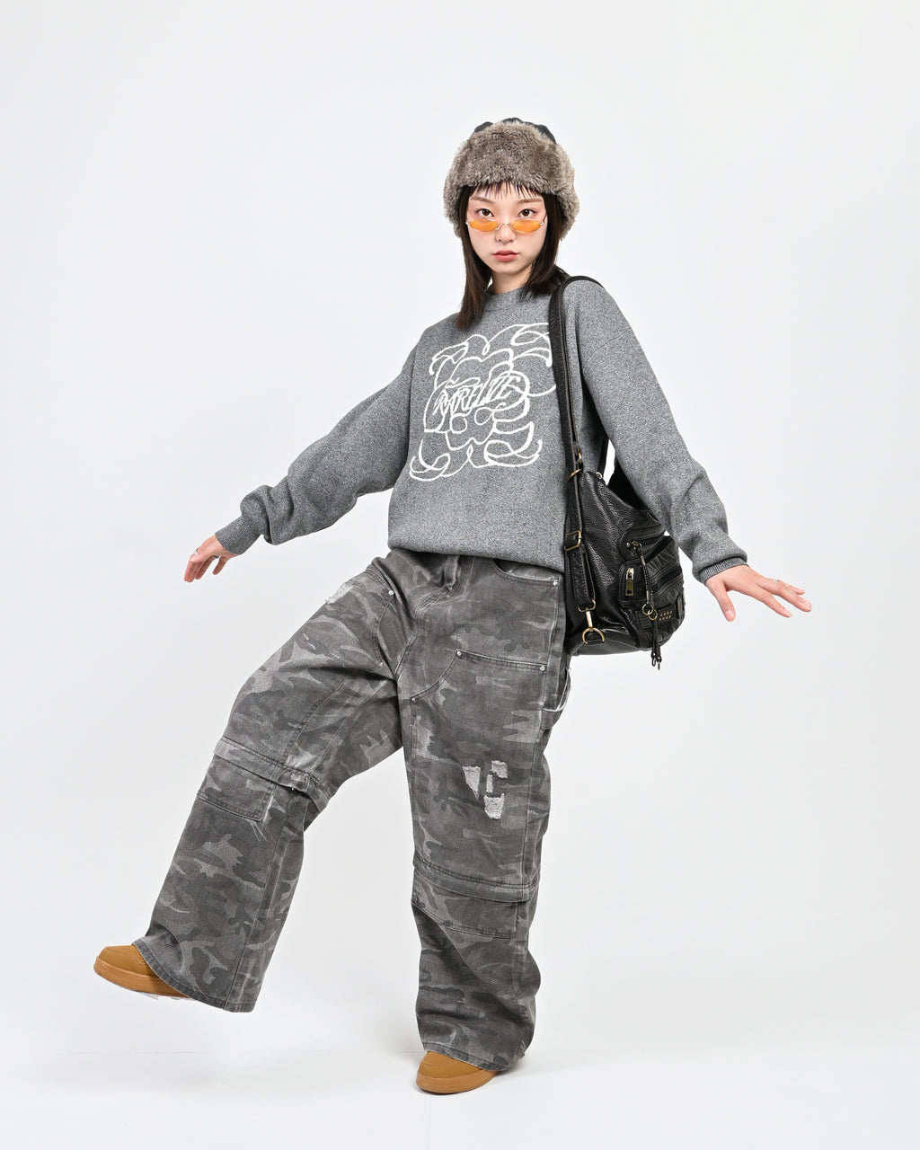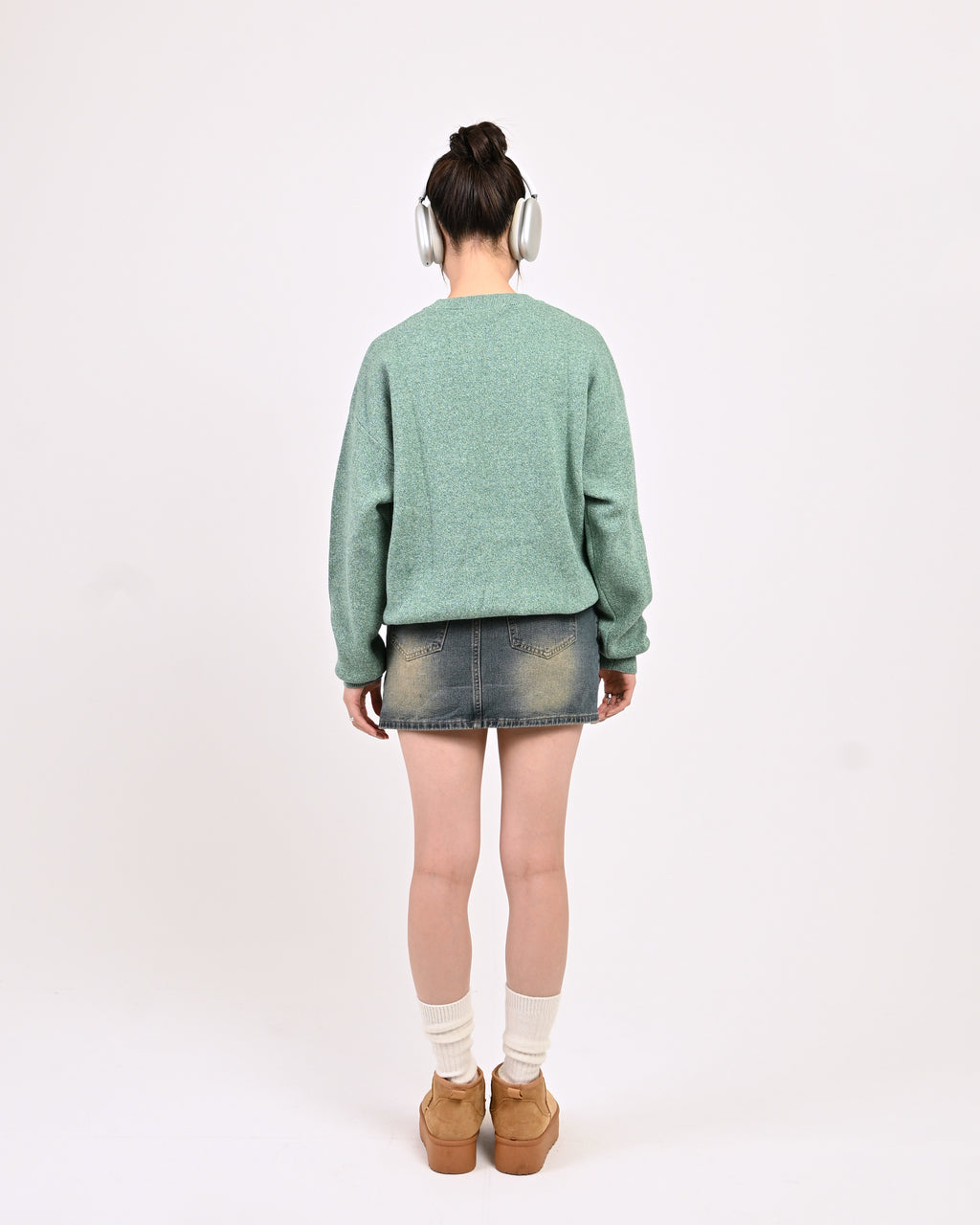 複数の色をミックスして編み上げたメランジニットを採用し、奥行きのある発色と表情を実現。
